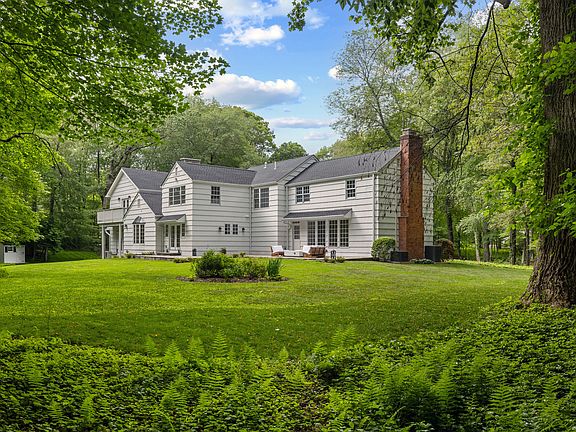 This property wins BEST-IN-CLASS with brand new renovation, perfectly situated in a prime west-side neighborhood location near New Canaan village. This turnkey home blends modern elegance & timeless charm, offering five bedrooms, four and a half bathrooms, and 3 floors of sophisticated living space on two private, park-like acres. Main floor key features: Gourmet Kitchen: New, classic-modern kitchen featuring double islands, top-tier stainless SubZero & Wolfe appliances, a walk-in pantry, an adjacent sun-filled family room with fireplace, formal dining room, living room with fireplace & access to the wrap-around slate patio. Primary Suite: A spacious addition includes a private balcony, tray backlit ceiling, sitting area, enormous walk-in closet, and a spa-like bathroom with a soaking tub. Generous Living Spaces: home office, laundry room, mudroom area and a finished basement with a fireplace, half bath and wine fridge offer expansive space for both relaxation and recreation. Exceptional Outdoor Amenities: Enjoy quiet privacy with surrounding Ct stone walls, a large slate patio, a lovely front yard pond with aerator fountain, and a level private backyard. Practical Luxury: Includes a heated/cooled three-car garage with double-height ceilings to accommodate car lifts. Prime Location: Only 6 minutes from New Canaan village amenities and the Metro North train station. This move-in-ready property offers an unparalleled lifestyle opportunity. Don't miss this opportunity.