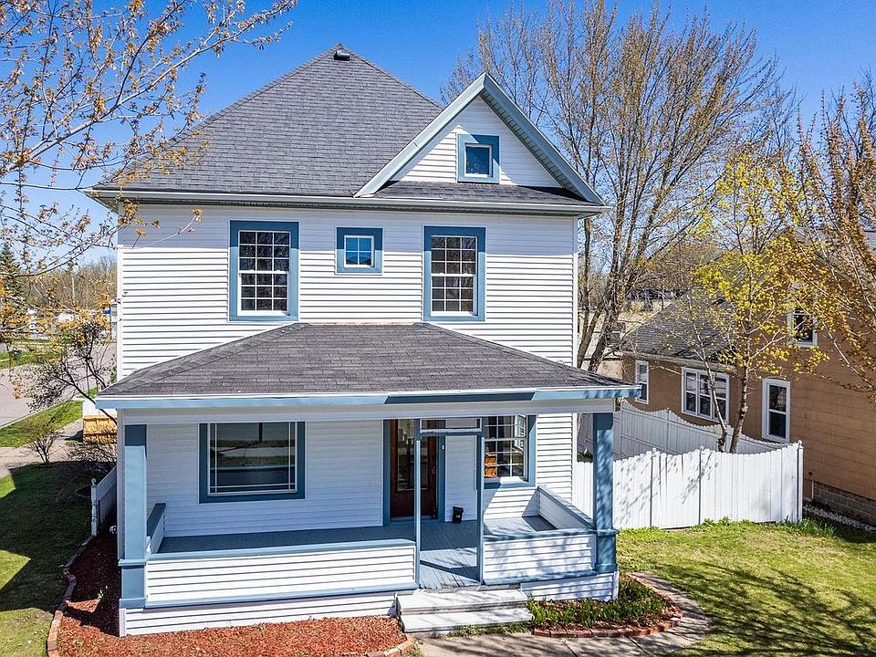 Meticulously refinished throughout, this home blends timeless elegance w/contemporary comfort. You are greeted by inviting original woodwork & modern amenities that extend throughout the home. Spacious living room provides an ideal setting for relaxation w/ample natural light pouring in through newly installed windows. Newly redesigned kitchen adorned w/sleek countertops, stainless steel appliances & custom cabinetry. Upstairs, find 4 generously proportioned bedrooms, each exuding its own unique character & charm. 1 & beautifully appointed bathrooms, tastefully updated w/modern fixtures & finishes. Outside discover a private oasis awaiting your enjoyment. The expansive patio offers an idyllic setting for outdoor gatherings. 1 car detached garage & off-street parking provides easy access.