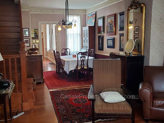 Welcome to 148 W Pomfret St in the heart of downtown Carlisle, PA. This charming townhouse boasts 4 bedrooms, 2.5 bathrooms, and a historic feel in the historic district. Enjoy the convenience of second floor laundry and a third floor full bathroom. The fenced yard and patio provide a perfect outdoor space for relaxing or entertaining. With off-street and garage parking, you'll never have to worry about finding a spot. Don't miss out on this unique opportunity to live in a piece of Carlisle's history. Features: fenced yard, patio, garage and off street parking, walkable, third floor full bathroom, double vanity, second floor laundry, dishwasher, and storage. Detailed Description Below. Full details at CarlisleDave dot com. All information is deemed reliable but not guaranteed. Owner is represented by a PA Realtor #RS300174. Welcome to this historic rental offering in downtown Carlisle, PA near Penn State's Dickinson Law School. This quiet unit is in an ideal location close to everything our beautiful town has to offer including the weekly farmer's market just a block away. A more detailed description is coming soon. Contact me below to be informed of all the details when they're available. This residence offers a blend of classic charm and modern convenience, perfectly situated for those seeking a vibrant and walkable lifestyle. Whether you're unwinding after a long day or entertaining friends, this home provides a welcoming atmosphere. The layout is thoughtfully designed, offering a practical flow that suits a variety of lifestyles, and includes a formal dining room and lots of storage. Located on West Pomfret Street, you'll find yourself immersed in the rich history and lively community that Carlisle offers. Enjoy leisurely strolls to local shops, cafes, and restaurants. Explore the charming downtown area, take in the sights of Dickinson College, or relax in one of the nearby parks. This rental provides a wonderful opportunity to experience the best of Carlisle living. Don't miss your chance to call 148 W Pomfret Street home. Sorry NO smoking. Pets will be considered on a case by case basis subject to owner approval. Tenants must provide up to date vet records, flea medicine receipts, and licensing documentation upon request. An increase in rent and/or an additional refundable pet deposit may be required. All information is deemed reliable but not guaranteed. Rental and management services are offered by Dave Fleming, a Pennsylvania Realtor #RS300174 through Distinctive Property Management, LLC as Real Estate Broker #RB070109.
