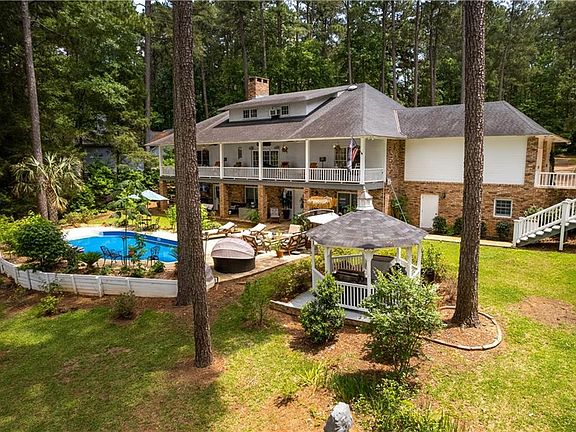 Beautiful Acadian style Sibley Lake Home. 4,086 sq.ft living area on three floors. The main floor has two bedrooms, two full upgraded bathrooms with granite counters, a formal dining room, living room with fireplace, den with fireplace and an upgraded kitchen with granite counters. The top floor of the home features a large office / bedroom complete with full bath and the lower floor of the home features two full bedrooms, one with fireplace and a full bath. This home was upgraded in 2016 with renovation in the kitchen, bathrooms and enclosing carport to make a two car garage. The lower floor has a workshop and possible utility room. There is a inground pool with jacuzzi, and a lovely patio for entertaining guests. Seawall was built in 2016 and is connected to a boathouse and dock with two slips. This home provides privacy, entertainment and relaxation for family with a beautiful view of Sibley Lake.