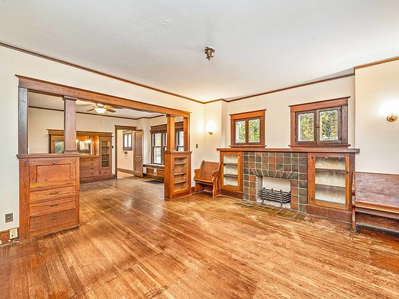 Absolutely charming all brick, 4 bedroom, 2 bath Hinckley home complete with all wood floors and totally remodeled bathrooms! Upon entering, you'll quickly notice the vintage built-in cabinets and shelving in the living and dining areas that is a reminder of days gone by. Both bedrooms on the main level have full baths. Upstairs, you'll find two more large bedrooms with walk-in closets and a common area. Storage won't be a problem as this house comes with a full basement. The garage is heated and the yard is fenced.