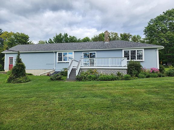 Location! Location! Location! Looking for acreage, privacy and peace & quiet? This property is for you. First time on the market, this 3 BR/2 BA Ranch is situated on a beautiful 10 acre lot with several perennial gardens, stonewalls and wooded areas. The home is open-concept with several wood floors, and a cozy fieldstone fireplace in the living room. Both the covered patio and back deck offer space for relaxing & outdoor enjoyment. The basement, which was once finished and could easily be again, is set up with a work bench and a finished room ready for your ideas. The shed in the back yard is great for storage, or better yet your own creative/personal space. Fresh paint on the exterior as well as on the interior ceilings, July 2023. Don't let this one pass you by!