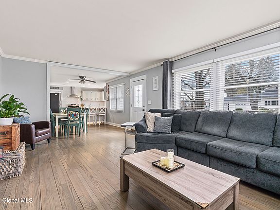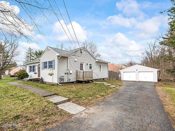 Welcome to Wemple Rd; a gorgeous ranch offering single level living with a spacious open floor plan! This charming home boasts a large living room flowing seamlessly into the dining area and remodeled kitchen with stainless steel appliances. Enjoy 3 generous bedrooms, a stylishly updated full bathroom, and the convenience of first floor laundry. Notable upgrades include dishwasher 2025, roof 2023, refrigerator & range w/oven both 2023 and refinished gleaming hardwood floors 2022. Outside, entertain in style on the expansive concrete patio with fire pit (2022), all situated on a beautifully landscaped & flat fully fenced .47 acre corner lot. A large detached 2 car garage completes this home. Don't miss out on this Glenmont Gem!