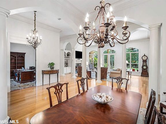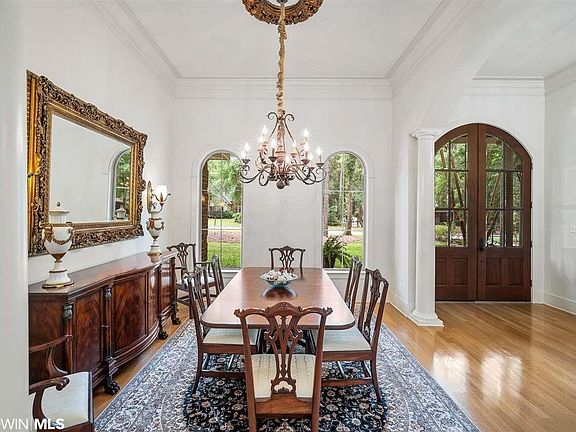 Welcome to the prestigious Woodlands at Fairhope! Sitting on almost 1 acre, this elegant custom brick home is immaculate and features 4 bedrooms, 3.5 bathrooms, an office, a sparkling Gunite swimming pool and an outdoor fire pit with seating area! Entire interior has been freshly painted! Tall ceilings, travertine and wood floors, arches, and split bedroom plan. Everything is on the main level expect 1 bedroom and bathroom which is on the 2nd level and could be used as a theatre media or bonus room. This house is ideal for entertaining...huge kitchen with breakfast area, island with barstool space as well as a formal dining room. Kitchen boasts white cabinets galore, stainless steel appliances including refrigerator, gas cooktop oven, and black granite counters. Oversized Master Suite includes a sitting area with 2 large walk-in closets, separate shower, jetted tub, and double vanities. Jack and Jill bathroom shared between bedrooms 2 and 3. Guest half bath located near kitchen. Large laundry room with big closet and desk area. New roof 2019. Location is in the middle of everything--close to downtown, shopping, hospitals, schools! Don't wait--schedule a showing to see this house today! All information deemed reliable but not guaranteed. Buyer to verify all information.