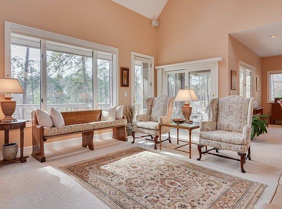 PRIVACY - With wooded and golf course views from every window! Custom built 4 BR, 4.5 bath home in gated "Southern Living" community. Designed for entertaining with abundant natural light, dramatic open areas, well-appointed kitchen and gracious outdoor living spaces. TWO MASTER SUITES on main floor, study, and upper level with two additional guest suites. WORKSHOP, plus large BONUS room over garage. BRING YOUR GOLF CLUBS!