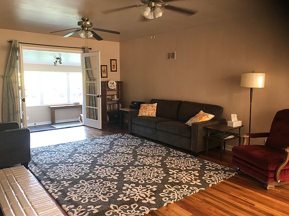 This light-filled mid-century modern house on a lovely big lot is perfect for gardening enthusiasts and pet owners. It has an open floor plan, hardwood floors, large living room with ceiling fans and a fireplace, curved archways, a dining room with glass-fronted built-ins, and a sun room that opens onto a covered back patio. The sun room can serve as a family room, office, art studio, or fully-conforming 3rd bedroom. The master bedroom has an ensuite bathroom, large closet, and built-in cabinets. More built-in cabinets in the hall and mudroom provide extensive storage space. The 8600 sq ft property has a landscaped front yard and large fully-fenced back yard with privacy hedge, raised vegetable beds, a mature cherry tree, a new fig tree, more room to grow vegetables or wildflowers, and a big grassy lawn for people and dogs to play. There is a covered shed to store your garden tools and toys. The 25-year roof was installed in 2016, the hardwood floors were refinished in 2017. Electrical in the garage and attic storage area was updated and extended in 2017. Exterior windows are vinyl, double-pane. Washer and dryer are just over 1 year old. The house has an attached garage and extra off-street parking spaces. It is on a wide street in a friendly, established neighborhood, near parks, shops and the Fairgrounds. Easy biking distance to downtown. Note: A Marion County assessor visited the property on June 18, 2018 to take measurements to correct their outdated records. Until the electronic records are updated, you can confirm the measurements by calling the assessors office. Seller willing to pay up to 1% toward buyer agent commission and standard seller's closing costs.