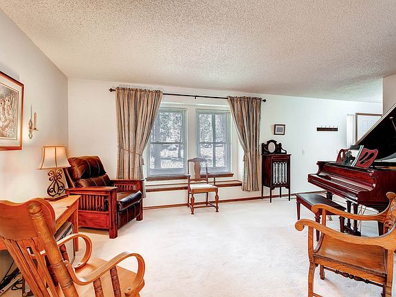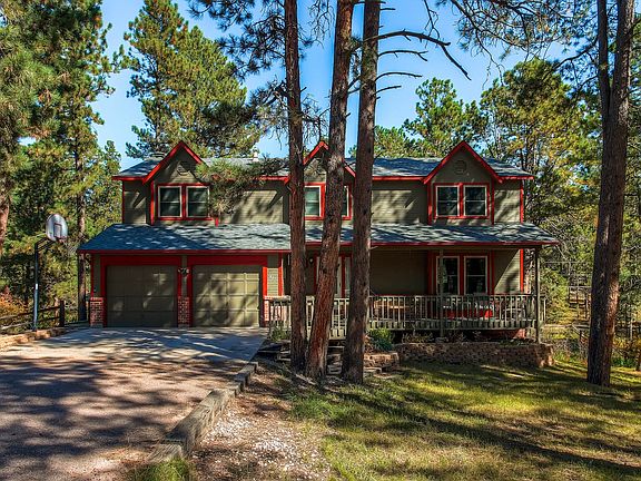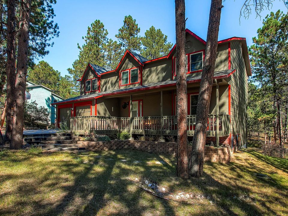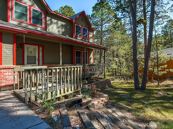 HONEY STOP THE CAR Quiet neighborhood, just minutes from I-25. Enjoy the peace and serenity of this well maintained home. Truly a mountain paradise, surrounded by a large pine tree forest. Great location in the trees but close to town. Home features 4 Bedrooms, 2.5 baths with formal living room and dining room. Huge Kitchen, lots of cupboard space with 2 pantries. Hardwood floors which have just been refinished. Large breakfast nook with bay window. Kitchen opens to family room with fire place and walks out to the large walk around back deck overlooking a large yard. Upper level features Handy utility room. Huge Master Suite with walk in closet. 3 large additional bedrooms, 2nd full bath. Recently installed carpet throughout. As you approach this home you will notice a lovely covered front porch with a porch swing. So come on by and fall in love.