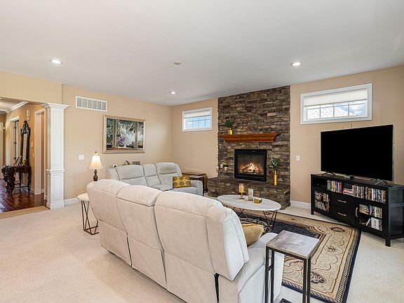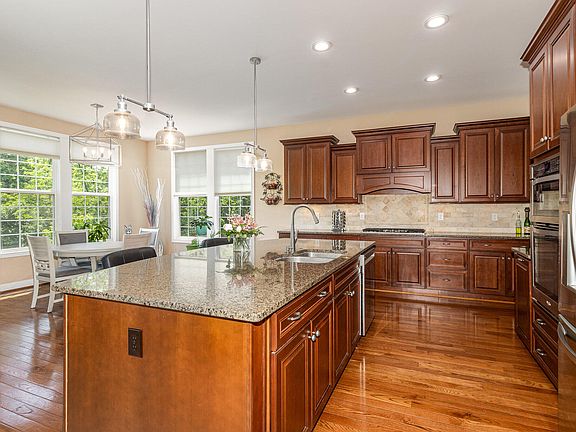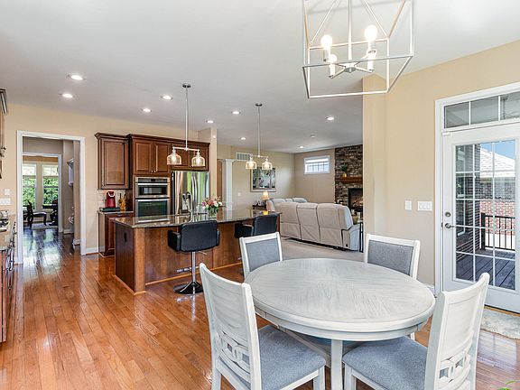 Open house Saturday May 25th, 11-1pm. Stunning Drees Pembroke. Open floor plan with over 3500 sq ft on 1st and 2nd floors. Basement finished with 2 large family areas, wet bar and half bath in November 2022. Beautiful hardwood floors. 9'' ceilings on 1st and lower level. Great room with gas fireplace, large windows with transoms allow for plenty of natural light. Gourmet kitchen has granite counters, tile backsplash, stainless appliances, 9'' island with counter bar. Large, light filled breakfast room with a walkout to a relaxing covered deck overlooking a wooded rear yard. Private office with french doors, formal dining room with wainscoting and crown moldings. Large primary bedroom with double tray ceiling, custom walkin closet and updated ensuite bath with dual vanities, soaking tub, and tiled shower. 3 additional generous sized bedrooms - all with walkin closets. 3 full baths on the 2nd floor. 2nd floor laundry. Inviting covered front porch.