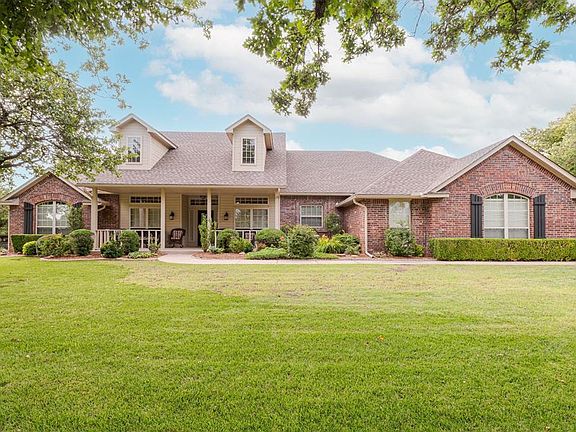This gorgeous 4 bedroom 2.5 bath home is located in Bradbrooke Estates and sets on a beautiful acre with a covered patio in the front and backyard! Stepping inside, you're greeted by an open and spacious floor plan that seamlessly connects the main living area and dining area. The light-filled living room features a surround sound system and large windows that fill the space with natural light. The kitchen offers ample countertop space, a spacious island, and another large dining area. The master bedroom offers a private en-suite bathroom with a whirlpool tub, walk in shower, two vanities, and a master closet that provides an abundance of storage space for your wardrobe and accessories. This home has 3 car garage, storm shelter, and a separate storage building with garage access in the backyard.