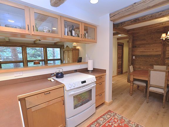 This unit has been designed to feel like a rustic cabin from the interior, with antique Spanish wood beams throughout. There are two bedrooms each have queen sized beds with plush comforters and full linens. The isolation of the unit reinforces the idea of escape and relaxation. To that point, there is only one TV with basic cable. Yet, there is a DVD player and high speed internet for streaming through Amazon or Netflix after snow or summer activities. A wood burning fireplace, nearby hot-tub, a chest full of games and puzzles, a deck with gas BBQ, and a completely accessorized kitchen round out the features of this mountain get-away. The unit has one assigned covered parking spot and additional visitor/guest parking on-site. It is a short walk to unit along a path that is well lit and maintained (but NOT handicap accessible). The condominium complex is not on the TOV bus route; the nearest stop is .8 mile. Winter rate is 425/night. No less than 1-week rentals. 150 cleaning fee. Beautifully decorated mountain retreat will make you feel as though you are in a cabin in the middle of the woods, when in fact you are just minutes from Vail Village on Buffehr Creek Road. This unit is conveniently located near the retail and restaurant amenities of West Vail, yet quiet (away from I-70) and extremely private. Open all the windows; you will not hear any highway noise. The setting includes open landscaped meadows adjacent to national forest with aspen groves allowing for wildlife sightings. Some of Vail's best hiking, snowshoeing and mtn. biking trails are located just outside the front door making this location truly 'Vail's Best Kept Secret.'