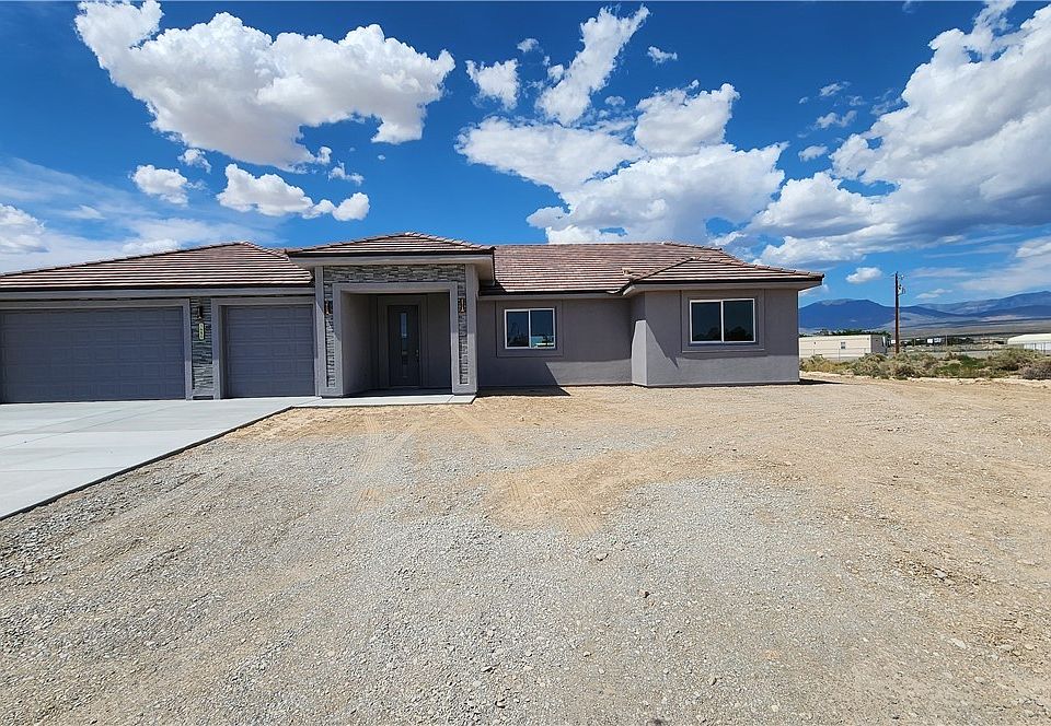 Looking for a gorgeous desert oasis les then hour away from Las Vegas? Your search is over! Brand new home with a stuning mountain view in Pahrump! Just a block away from Lake View Executive Golf Course, this single family home has 3 bedrooms, 3 full baths, huge 3 car garage and RV parking with all hook ups. Tons of upgrades like recessed lighting true out*vinyl planks flooring*amazing kitchen with quartz countertops and backsplash* stainless steel appliances*white shaker cabinets*pot filler. Living room has a gorgeous built in electric fireplace with shelving to hold your memories! Spacious Resort style primary suit with a huge walking closet, private access to covered patio and bread taking bathroom, featuring upgraded shower finished in Italian percaline tiles*free standing tub*double vanity. Second bedroom suit with gorgeous custom private bathroom. Entertain on your own covered patio and large backyard ready for your imagination to customize this 0.67 acre cul-de-sac property!