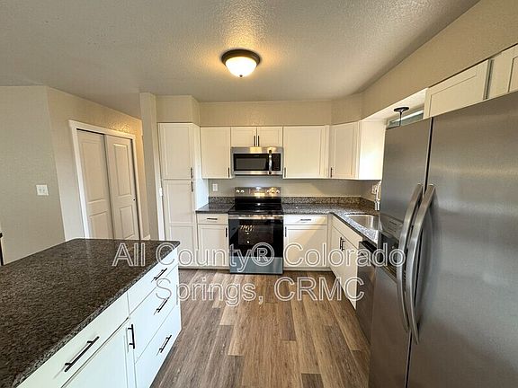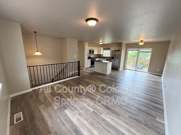 Cimarron Hills 4 bedroom, 2 bath, 1 car garage home with New paint and carpeting throughout. Main floor has a living room, dining area, kitchen with granite countertops, stove, refrigerator, dishwasher, and microwave. Two bedrooms and 1 full bathroom. A deck off the dining area gives you a great view of Pikes Peak. Lower level has a den/family room, 2 additional bedrooms, a 3/4 bath with tiled shower, and utility area with washer & dryer hookups. Central A/C, fenced back yard and pet friendly with additional deposit. There are eleven varieties of fruit trees on the property to enjoy. This property is close to the Powers Corridor with dining, shopping and much more. Peterson SFB, Schriever SFB, and the Colorado Springs Airport are just a short commute away. Fireplace is for decorative purposes only and cannot be used. Sign up on our Waitlist and receive notifications as soon as showings are available. Owner may consider up to 2 pets upon approval, with additional pet deposit, pet admin fee, and Petscreening profile. Offered by All County Colorado Springs, CRMC. Call us today, or see more of our properties by visiting us online. Please note, if approved for this property, the longest we can hold off before starting a lease is two weeks from the ready date. *Renter's Insurance is required upon execution of lease. All County Colorado Springs provides coverage options with a 3rd party vendor. Inquire within for more details. Applicant has the right to provide All County Colorado Springs CRMC with a Portable Tenant Screening Report (PTSR) that is not more than 30 days old, as defined in 38-12-902(2.5), Colorado Revised Statutes; and 2) if Applicant provides All County Colorado Springs, CRMC with a PTSR, All County Colorado Springs CRMC is prohibited from: a) charging Applicant a rental application fee; or b) charging Applicant a fee for All County Colorado Springs, CRMC to access or use the PTSR.