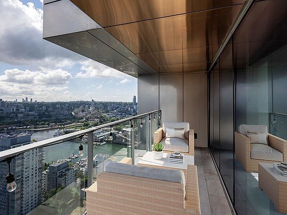 On the 42nd floor of an iconic downtown address, this 2 bed, 2 bath residence boasts panoramic views of False Creek, the North Shore Mountains, and the city skyline through expansive floor-to-ceiling windows. Thoughtfully designed with two balconies, A/C, a chef’s kitchen with Miele appliances, engineered hardwood floors, and an open layout, this home balances style and function. Comes with 2 parking stalls and a private cellar/storage room. Residents enjoy world-class amenities including a 25m heated outdoor pool, 10,000 sq. ft. HOUSE Concepts fitness centre, golf simulator, and 24-hour concierge. Steps to the Seawall, shopping, parks, and Vancouver’s top dining, set in the most desirable pocket of downtown. OH OCT 4/5 2PM-4PM