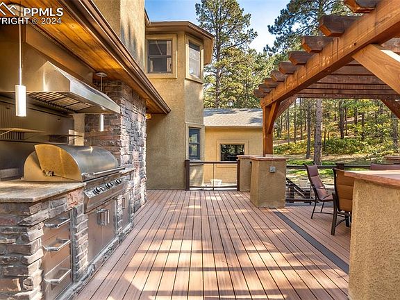 Welcome to your dream retreat! This exquisite four-bedroom, five-bath custom two-story home combines elegant design with thoughtful functionality. Nestled on a private wooded lot, this property features an expansive entertaining area that is perfect for hosting gatherings. Step outside onto the impressive 29 x 22 Trex deck, partially covered for year-round enjoyment. Equipped with a built-in gas grill, exhaust, and lighting, this space wraps around three sides of the house, offering breathtaking views of the natural surroundings. A tranquil water feature enhances the ambiance, easily enjoyed from both the deck and the large covered patio below. The patio, adorned with a beautifully finished warm wood ceiling, boasts a cozy fireplace and multiple seating areas, making it the perfect spot for relaxation. Inside, the home is a masterpiece of custom features, to include solid Alder Select doors. Enjoy built-in shelving throughout, including a hidden door behind the bookshelves in the basement, adding a touch of whimsy. Two stylish bar areas cater to your entertaining needs, while a Sonos sound system fills the main and lower levels with music. The main level office is a sophisticated retreat, complete with extensive wood built-ins and its own fireplace. The luxurious master suite features a custom closet with drawers, shelves, and shoe racks, while the master bath indulges with heated tile floors and heated towel bar for a spa-like experience. This home also boasts modern conveniences, including two water heaters, a 90% efficient furnace with AC, and ceiling fans throughout to ensure comfort in every season. With a two-car garage and an attached 18 x 24 shop, this property meets all your practical needs while providing an unparalleled lifestyle. This home is truly an entertainer’s dream, blending style, comfort, and functionality in a picturesque setting. Don't miss your chance to own this one-of-a-kind gem!