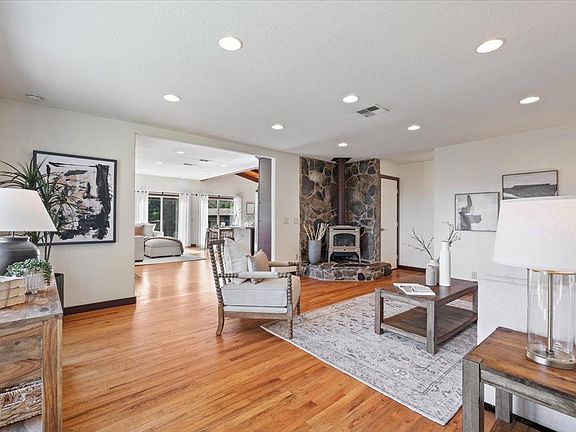 A refined blend of elegance and country serenity, this Placerville estate spans 4 acres with sweeping views, a seasonal spring-fed pond, and multiple garden areas thoughtfully designed throughout the property. The home features 3 spacious bedrooms, 2 bathrooms, and a versatile bonus room that can serve as a 4th bedroom or private office. Light-filled interiors showcase refined finishes and sophisticated design, perfectly blending comfort and style. Owned solar provides modern efficiency, while the property includes a detached 2 car garage, a detached 2 car carport, and ample parking for guests or equipment. Equestrian enthusiasts will appreciate the well appointed animal stalls and open space for a horse or other livestock. Expansive grounds offer endless possibilities from creating your own boutique vineyard, if you desire, to establishing a serene country retreat, offering a rare combination of elegance, functionality, and natural beauty.
