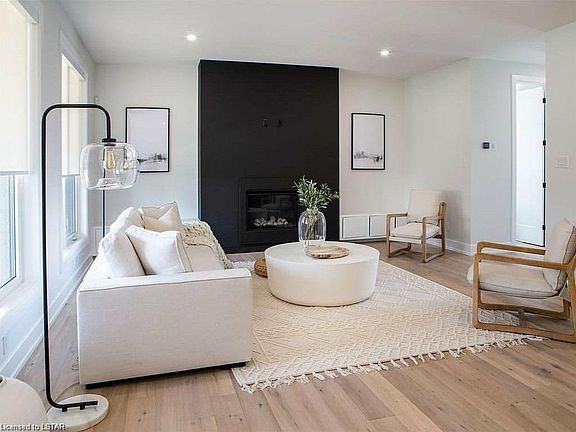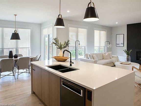 To Be Built! Two-storey home in beautiful Creekview (Close to Hydepark Shopping centre, all amenities, and Schools). East facing lot with some privacy at rear, and partial pond view from front. Featuring 2380 sq.ft of finished living space, 4 bedrooms and 2.5 bathrooms. Main floor features 9' ceilings, 8' doors, engineered hardwood throughout main floor, Stained wood staircase with Metal Spindles and railings, 8 pot lights and spacious laundry/mudroom. $19,000 Custom cabinetry allowance (kitchen and bathroom cabinets), Group 1 Quartz countertops included in kitchen & Main + Ensuite bathrooms. Gas fireplace in great room. Master Bedroom with, walk-in-closet and gorgeous ensuite with glass shower, freestanding tub, quartz counters and double sink vanity. Double car garage, insulated garage doors and paver stone driveway. Unfinished basement with plenty of storage. Close to all North London amenities. Photos are from a Similar Floor plan Model with Upgrades above builder Standard. All offers through Listing Agent.