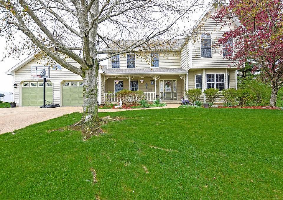 Owners have recently done some sprucing and you will love this beautiful two-story Mt. Zion home with its eat-in kitchen with granite counter-tops, large pantry; spacious laundry Lovely ceramic tile throughout the main floor. Dining room, living room with gas log fireplace, family room with loads of light and wood burning stove in fireplace Lawn extends to rear tree line with vinyl fenced area for children and pets. Four bedrooms upstairs with sizable closets. The master bedroom and master bath feature vaulted ceilings. Finished area downstairs with bath and loads of storage. Other features are central vac., whole house fan, and sprinkler system. Screened rear porch for enjoying summer evenings. See it today! Approximate age of systems - sump pump 2017, furnace 2016, roof 2014.