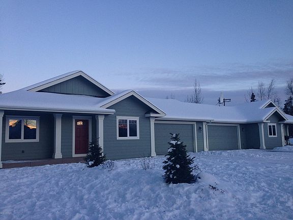 Side by side ranch style duplex w/ garages in the middle for privacy. This well maintained duplex has an upbeatable location & an excellent rental history w/ long term tenants. Each unit features 3 BR, 2 BA, & an oversized 2 car garage. Comes w/ paved driveway, rock gardens in front, gutters, tile floors, & all appliances. Sits on 1.5 acres, great location for commuting to Anchorage, yet central