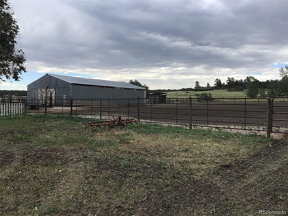 Excellent property for horses or other agricultural use. Located extremely well near Franktown, Colorado. If allowed, could be used for a small business operation. The home and barn are older. Corrals are made of pipe and in excellent shape. Balance of property has excellent fencing. Nice outdoor arena for training of horses. Elementary School located next to Property.