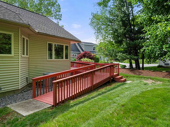 Welcome to Woodgate Commons and this custom designed 3 bedroom, 3 bath home. With an attention to detail, it features a spacious open concept living, dining, and a kitchen area with soaring vaulted ceilings, maple hardwood floors, granite and Corian counter tops, bright sunny windows, and a cozy gas fireplace. The 1st floor primary bedroom boasts brand new carpeting and a large walk-in closet. The oversized primary bath is ADA compliant with a roll-in shower along with a jetted tub and grab bars. A 1st floor washer/dryer completes the one floor living design. Go upstairs and you will discover 2 generously sized bedrooms, another walk-in closet, and a full bath. The attached 2 car garage includes a lift for a stair-free entry. Lots of extras, including a whole house Trion air filter, Bose surround sound AV system, lawn irrigation and monitored security system. Woodgate Commons prides itself on a low monthly fee of $240 to include mowing, mulching, fertilizing, pruning, and plowing. Open House Saturday and Sunday, May 25th and 26th from 10:00 to Noon.