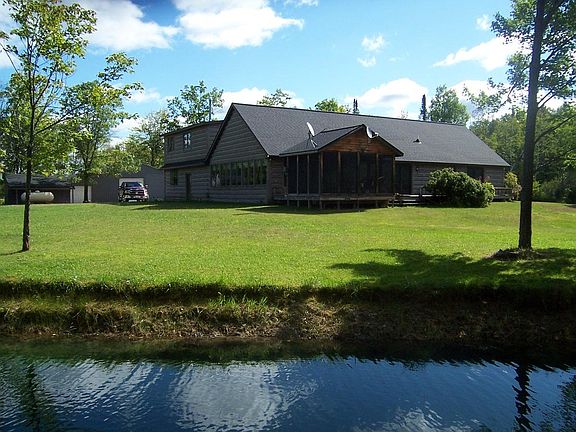 Beautiful custom built 3 bedroom perma-log home with 2 ,1/2 baths, family room with cedar paneling and lots of windows overlooking the stocked 2 acre pond. Lots of Oak cabinets, eating island, large open living room dining room and kitchen area. Huge master bedroom suite with walk in closet and full bath. Large main floor utility room. Upstairs area has 2 bedrooms a full bath and a 5 x 24 closet/storage area. Perma log is a poured concrete siding that is dyed and formed to look like a log home. These homes are warm in the winter and cool in the summer and best of all it is MAINTENANCE FREE. The outbuildings consist of a 40 x 40 heated pole barn and an enclosed boiler room for the outdoor wood boiler. The large stocked pond is approximately 2 acres in size with an average depth of 15ft
