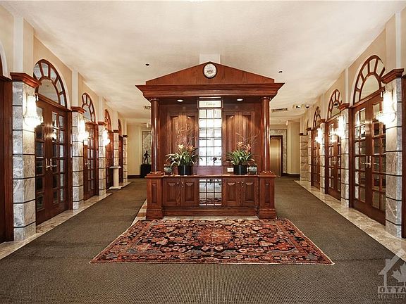 This pristine updated Rousseau suite in The Classics (Tower III) of The Riviera boasts pride of ownership & elegance with 9' ceilings. Approx $200,000 in upgrades vis a vis H.W. flooring, both ensuite & guest bathrooms, balcony enclosure & blinds, laundry room, kitchen & custom window treatments, makes it in "move-in ready" condition. Eight appliances + two prime parking spots & 1 basement locker are also featured. This tower of The Riviera features 24/7 lobby security guard + concierge service, lobby spa as well as linked access to the main Recreation Centre. Look no further as this building has it all !! No exceptions, this is a pet & smoke free environment. Access to The Hurdman Station & light rail system just steps away as well as the Trainyards, Train Station & moments away from the Ottawa Airport. NOTE: Measurements from Builder's Plan are approximate. Whirlpool tub to be sold in "as-is" condition.