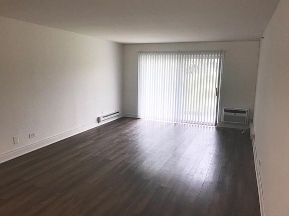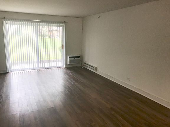 Beautifully renovated (see the before and after pictures) Mount Prospect - Look no further! New and updated 1 BR, 1 BA in great location - only minutes for I90. Check out the details below: KITCHEN Granite countertops, double sink with Moen faucet, white cabinets, new refrigerator, stove, and dishwasher. LIVING/ DINING ROOM New flooring throughout. New Frigidaire A/C unit. Radiant heating controlled by thermostat. Patio door opens up to the courtyard. Plenty of room to accommodate living room and dining room furniture. BATHROOM Professionally upgraded. New wall and floor tiles. Moen fixtures and quiet exhaust fan. Side closet for storage needs. BEDROOM New flooring throughout. Radiant heating controlled by a thermostat. Two closets with shelving. Heat and water included in rent. The only utility you have to pay for is electric.
