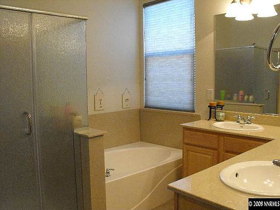 Beautiful Green Valley Estates home, corner lot, located on over 1/4 acre. Shows like a model home; custom paint, window coverings, lighting fixtures and surround sound. Master features jetted garden tub and spacious walk-in closet. Both laundry room and garage are plumbed for sinks. 220v outlet in garage. RV access/parking and dog run.
