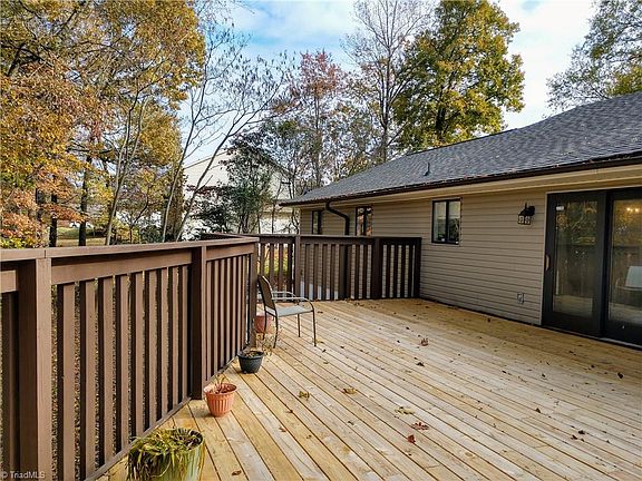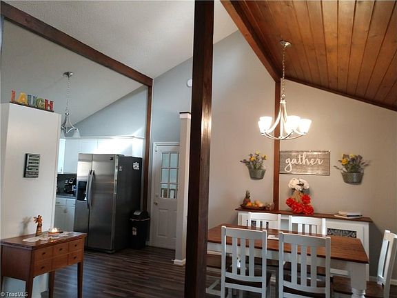 MUST SEE!! Updated contemporary home with a rustic flair. Beautiful exposed beams with tongue and groove ceiling. Flooring is durable luxury vinyl plank throughout. Updated kitchen with granite counters and stainless steel appliances. Updated lighting fixtures and ceiling fans. New roof and gutters. Oversized deck with new flooring, privacy and great for entertaining. Finished basement space not included in the total sqft. Main level garage and side load garage in the basement for storage for storage