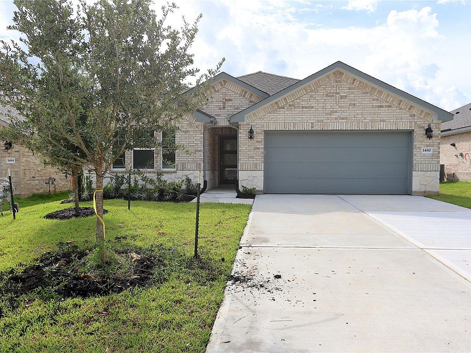 Brand New Energy-Efficient Home with Premium Features! Be the first to enjoy this brand-new, energy-efficient home in the desirable Stewart's Ranch community in Conroe. The Henderson floor plan offers an open-concept layout, making it easy to stay connected with family or guests while cooking in the modern kitchen. Inside, you'll find white cabinets, ornamental white granite countertops, gray-toned EVP flooring, and cozy warm beige carpeting, all thoughtfully selected for both style and comfort. This rental comes fully equipped with washer, dryer, refrigerator, a garage door opener, and a full front and back sprinkler system for added convenience and peace of mind, quick access to I-45, this home is perfect for commuters and nature lovers alike. just minutes away. Built with innovative, energy-efficient features, this home is designed to help lower your utility bills while delivering year-round comfort, better air quality, and long-term savings. No back Neighbor with great trees