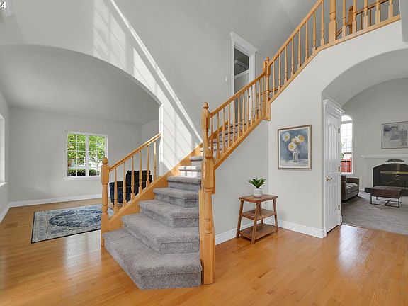 Stunning spacious home located across from parks and the River. This home features high ceilings, main floor primary bedroom and upper level owner's suite, formal dining, den/office, large work out room with separate entrance, gas appliances in kitchen, granite, island, family room with extra storage, laundry shoot, all new interior paint and carpets, new water heater, 425 sq. ft. bonus room above the garage, covered patio with 220 outlet for a hot tub, fenced yard, raised garden beds, and RV parking behind gate. Located across the street from parks and River bike path.