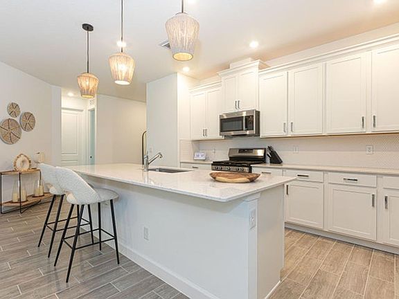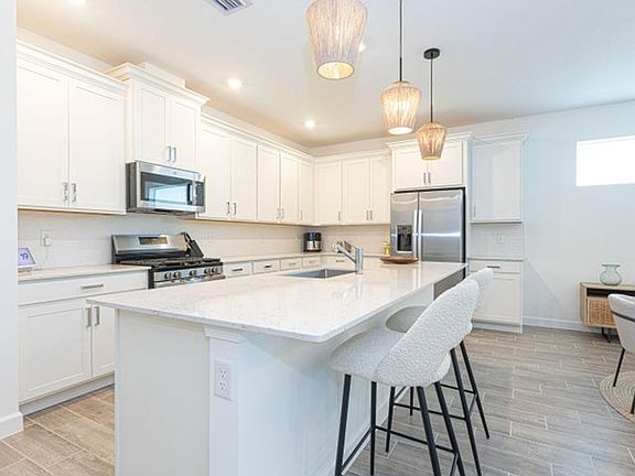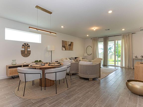 Courtesy of EXP Realty LLC Make this new house your home, the floor plan provides comfort living with ample room for the entire family. Down the foyer is an open concept layout that includes the kitchen, dining room and Living Room, with glass sliding doors leading out to the covered lanai and patio. On the opposite side of the home are three secondary bedrooms and the owner's suite with an en-suite master bathroom. Home is being offered fully Furnished with high end pieces to elevate every room of the House.