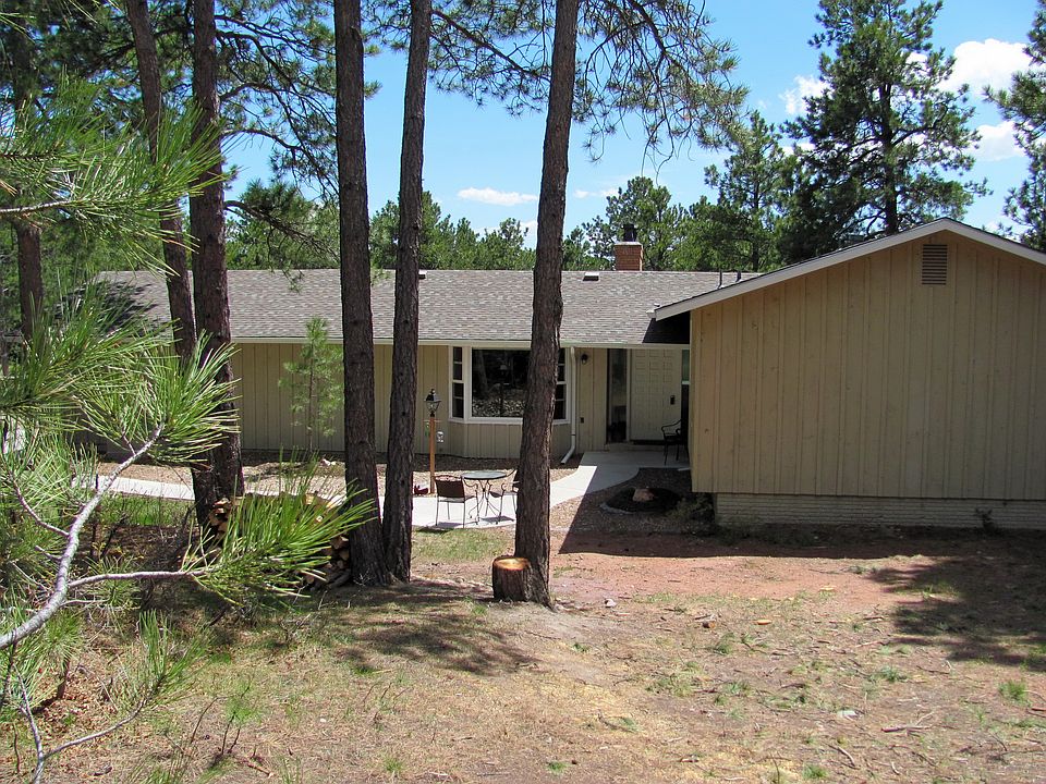 Light and Bright updated Woodmoor rancher with lots of windows and sunlight. Open floorplan, hardwoods, 4 bedrooms plus large main level office/media room. Inviting great room with fireplace, vaulted ceiling with wood ceiling treatment and walls of windows; unique kitchen with solid granite and hammered copper counters, cherry cabinets, stainless appliances and built-in buffet. Large master has updated bath with raised glass bowl sinks on granite, alder cabinets, and stylish fixtures. No neighbor behind! .8 acre treed lot provides privacy.