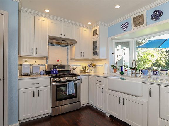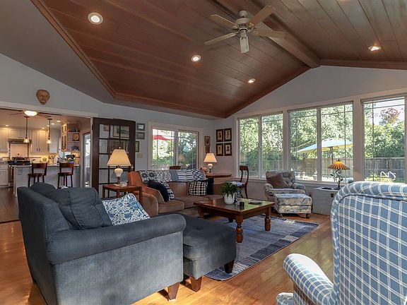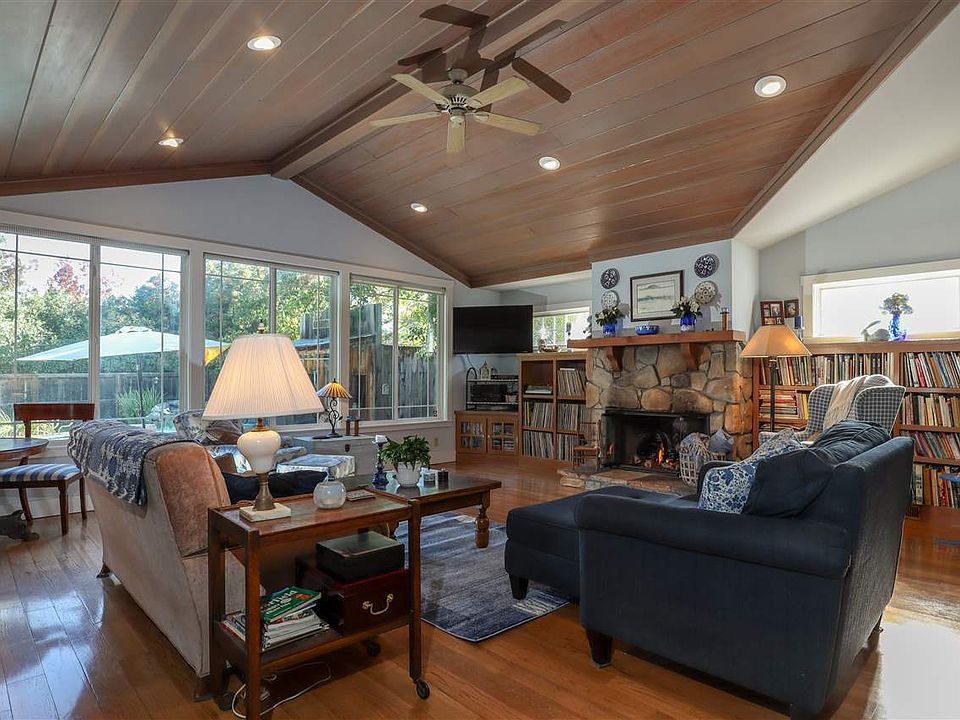 Charming expanded single story home in the desired town of Clayton has been completely updated! Features of this home include rich HW floors, DP windows, crown molding, updated kitchen & bathrooms, 2 fireplaces & an expansive family rm overlooking an impressive outside oasis. Kitchen features Calcutta Marble counters, bead board cabinets, farm house sink, SS app, café counter & large pantry. Just the kitchen is a family rm w/vaulted ceilings, custom bookshelves & large stone fireplace. Brand new updated hall bath w/dual sinks, shower over tub & floods of natural light. Master suite has sitting area next to a sliding glass door to a private deck w/steps down to the back lawn. Updated master bath features luxurious shower w/dual shower heads, vanity & an armoire for extra storage. Backyard offers a large deck off the kitchen, lush lawn & pool w/waterfall & patio seating right next to your own personal "Clayton Club!"