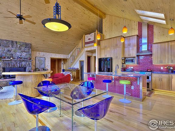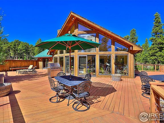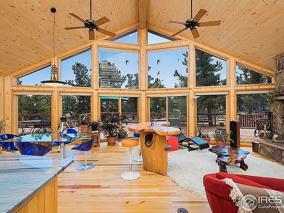 RARE home/property between Gold Hill and Peak to Peak Scenic Byway in Boulder County. This 14 acre property surrounded by National Forest is exceptionally private and peaceful. Home has stunning tongue and groove aspen ceilings(vaulted)/walls,wood stove, in floor radiant heat, updated kitchen w/Azul Macaubas quartzite countertop, the wall of windows brings the outdoors in. 2 car attached & 1 car detached garage. Completely off-grid home which feels like on-grid. Once in a lifetime opportunity and priced well. Build up to get the VIEWS! Please email at 14800ghr@gmail.com