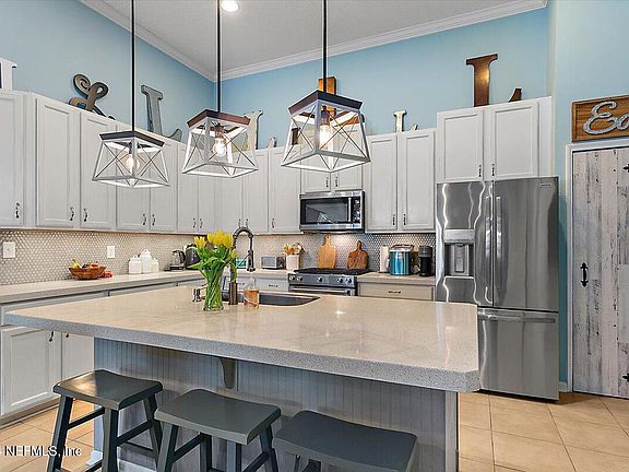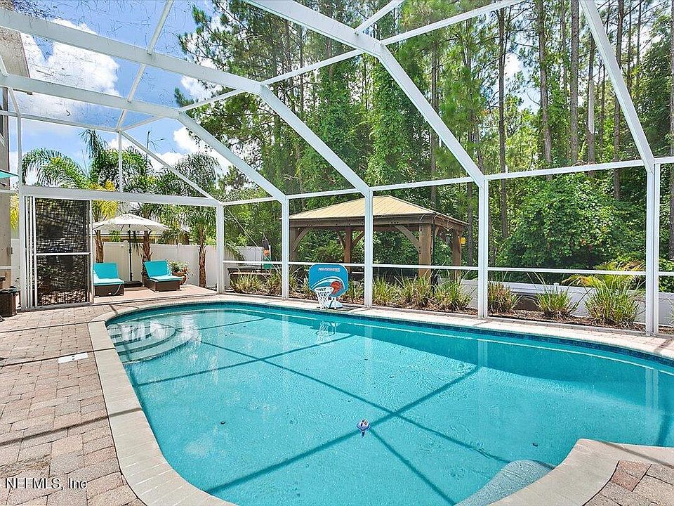 H&B 6/23 by 12pm. multiple offers . Welcome to the highly sought after neighborhood of Bartram Springs. This beautiful pool home has been well-maintained and beautifully upgraded. This home offers plenty of space and rooms for privacy while still having the cozy feeling. The primary bedroom and three additional bedrooms are downstairs with three bathrooms on the main floor along with an office and formal dining room. Upstairs you'll find the 5th bedroom and 4th bathroom and large media/bonus room. The kitchen has been upgraded with quartz counters, penny tile backsplash and antique white and grey cabinets. This home features crown molding, indoor and outdoor mounted speakers, saltwater pool, paver outdoors, pergola/cabana, 3 car garage and built-ins. Enjoy your pool this summer and beyond. This is a natural gas community with the very popular elementary school right in the neighborhood. Durbin town center is right down the street with movies, restaurants and shopping.