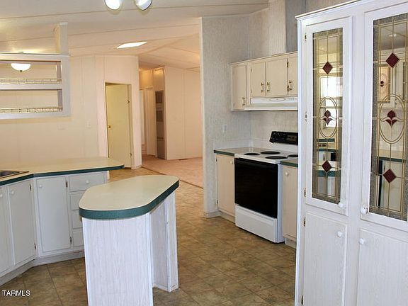 Pusch Ridge Mtn view from front porch. On 1 ac - nearly 50 trees providing privacy yet a wide open feeling. Enjoy peaceful bird watching or strolling between mature trees and . Kitchen offers an abundance of cabinetry & a large island with storage. Carpeting only 3 years old. Attached large storage room ready for exercise equipment or hobby work area. Back yard has 2 storage sheds with workbenches and power. Chain link fencing surrounds property with 1 stall carport at front porch and separate covered 2 stall carport. 3/4 mile to Oracle Rd Schools and quick access to Bashas, Banking, Restaurants, Oro Valley Hospital and The Oro Valley Market Place. 1 owner 1800 sq.ft well maintained manf.home. 2 Sheds w/power & Lots of space to add RV Parking. Property is clean & move in ready