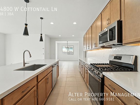 Be the very first to call this stunning new construction home your own! Located in a desirable new neighborhood in Surprise, Arizona, this spacious 4-bedroom, 3-bathroom home offers 2,436 sq. ft. of modern living.
