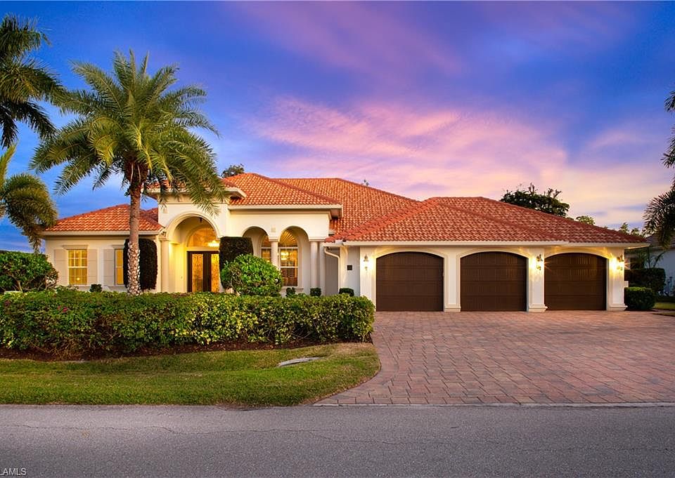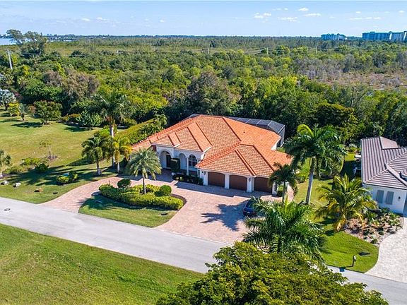 Outstanding location - just minutes from Sanibel Island and Fort Myers Beach. Striking custom built estate style home on a huge lot. This stunning home features over 3,000 square ft of living space, all impact resistant doors and windows, 14ft ceilings, Grand circular paver driveway and over 1,000 sqft of garage space. This home is a vast great room floor plan perfect for entertaining with details galore! Custom wood cabinetry throughout, porcelain tile, wood flooring, coffered ceilings, tray ceilings, and crown molding details abound. GE stainless steel kitchen appliance package includes refrigerator with ice maker, combination micro/convection wall ovens, dishwasher, electric cooktop, and wine cooler. The outdoor living area with summer kitchen, travertine decking, and salt water pool/spa with custom rock waterfall complete the setting for this spectacular home.