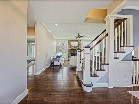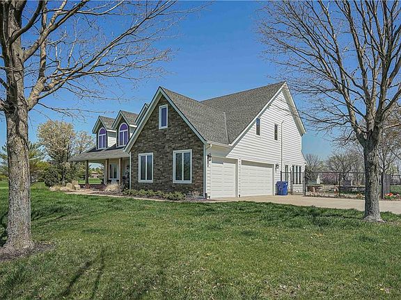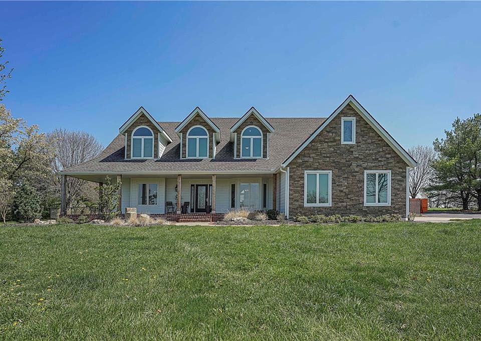 A Beautiful newly updated home on over 7 acres yet only minutes from all of the conveniences in Lee's Summit and Greenwood.. The long, winding, tree-lined drive is paved - no gravel! Professional landscaping and a stone bubbler fountain enhance the large front porch, which provides views of the awesome sunsets. This home has a wonderful layout with all modern amenities, providing a comfortable living environment. The first floor has hardwood floors. The renovated kitchen has new appliances, updated cabinets that go to the ceiling, with a large island and quartz countertops. The updated master bedroom and bath offer vanities with quartz countertops, a walk-in shower and stand alone soaking tub. The second floor contains three large bedrooms with walk-in closets, updated baths and a large multi-purpose room. The basement is partially finished as a TV room/man cave and has a half bath and loads of storage in the unfinished portion. The backyard has a new pool with a waterfall, hot tub and 6’ fencing. There is also a 35’ x 50’ outbuilding that is insulated, heated and cooled and has a 10,000 lb. automotive lift and 200 amp separate electrical service. This home is an ideal place for families or anyone seeking a tranquil lifestyle.