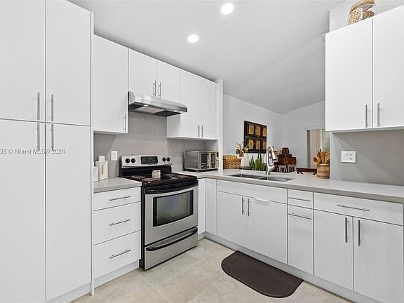 Welcome to your new home! This move-in-ready corner lot offers 3 bedrooms and 2.5 bathrooms + TWO FLEX rooms in great location. Step inside to be greeted by vaulted ceilings that create a bright & airy atmosphere, TWO FLEX rooms offer endless possibilities, whether you need additional bedrooms, a home office, a game room, a family room or all the above. NEW Kitchen with 40-inch cabinets and quartz counters, Flooring, Baseboards, Bathrooms, Ceiling popcorn out, sleek Ceiling in, Washer, Dryer, Light Fixtures, and Fresh Paint inside and out. Enjoy alfresco dining in your built-in-roof patio fenced surrounded by clusia plants and a cabana ½ bath. 4 parking spaces. NO CDD fees, NO HOA, NO Neighbors on the east side Furniture is negotiable!