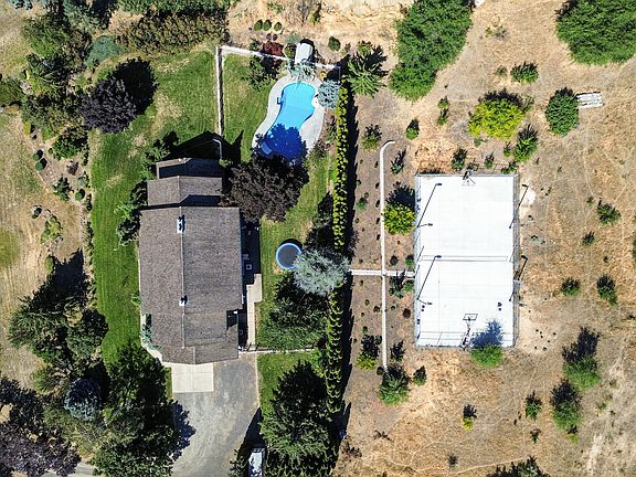 Nestled on nearly 4 acres in one of West Valley's most desirable areas, 14801 Summitview Extension Rd combines timeless design with endless potential. This 5,214 sq ft traditional home features 4 bedrooms, 3 full baths, and an additional 3/4 bath. A stately tree-lined drive leads to a grand entry framed by classic columns, opening to spacious living and dining areas ideal for entertaining or everyday life. Each bedroom includes a walk-in closet and bath--two serve as primary suites, and another offers a Jack-and-Jill layout. Outside, enjoy a sparkling in-ground pool, full basketball court overlooking the property, and beautifully landscaped grounds. A weight room off the garage and generous storage rooms add flexibility. Priced with room for updates, this rare opportunity invites your personal touch--a truly grand home that would command far more if the finishing work were already complete.