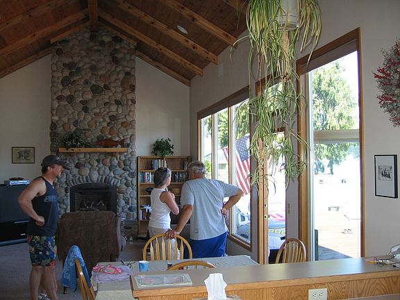 This beautiful home has the look of a lake cottage but when you open the door this spacious home has tons of room for everyone. The Great Room has a sweeping view of the Lake and Deck, plus a river rock wall for the fireplace. The Great Room and Kitchen feature beautiful knotty pine vaulted ceilings and a garden window in the kitchen that reaches from the counter to the ceiling.Extra Finished Room could be Home Office or BR The Main Floor Master w/a fantastic view of the lake & adj Bath