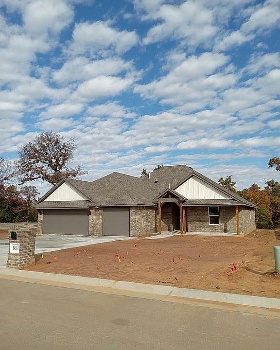 Built by Doyle O'Hagan Homes (405) 833-2218, this is a gorgeous 4-bedroom, 3-car garage home in Walnut Lane located in Choctaw, OK. Stunning kitchen with granite countertops, subway tile back splash, farmhouse sink, large island, lots of cabinets & pantry, microwave, cooktop, dishwasher and range. The inviting living room has a brick fireplace with custom cedar mantle & stunning beam in the cathedral ceiling. An exceptional built-in mud bench greets you just as you enter the front door. The master bedroom has an en suite bathroom showcasing a soaking tub and beautiful cabinetry along with double sinks, granite countertops, separate shower & toilet rooms and a walk-in closet. This 4-bedroom house also features a large enclosed utility room with lots of storage! A large covered back porch features impressive solid cedar posts and the amazing covered front porch sets off the home with more impressive solid cedar posts & shutters. Comes fully-guttered, with garage door openers and a fully-sodded Bermuda grass lawn. Carpet will be selected with buyer.