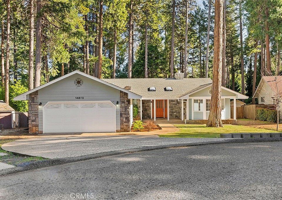 Welcome to 14802 Chipwood, where luxury, comfort, and peace seamlessly blend together. Located in the Woodbridge Subdivison, you'll enjoy the benefits of underground utilities, a neighborhood of custom homes, wide streets, and no HOA! Settled at the end of a private cul-de-sac, a warm front yard greets you with stunning masonry. As you step into the home, you will immediately feel the comfort of a mountain retreat with the vaulted, wooden ceilings. Not only will you enjoy the abundance of bright and natural light all througout your home, the living room features electronically operated blinds for optimal comfort. During cozy winters, relax by the free standing woodstove, enhanced with a built-in fan for efficient heat distribution. A chef’s dream - the kitchen features quartz countertops, stainless steel appliances, a gas range, an oversized granite island, breakfast nook and a built-in wine fridge. As we move throughout the home, you’ll notice the wide hallways and gorgeous flooring. The large master bedroom highlights a walk-in closet, vaulted ceilings, and a stunning master bathroom with quartz countertops, and a walk in shower. Each guest bedroom comes with their own perks including a mirrored closet in one, and a built in Hide-A-Way bed and office space in the other. Extra benefits include, a Wifi thermostat, a water filtration system, an oversized deck and back patio, a shed and finally, a large backyard with a lawn, and room to bring your final touches!
