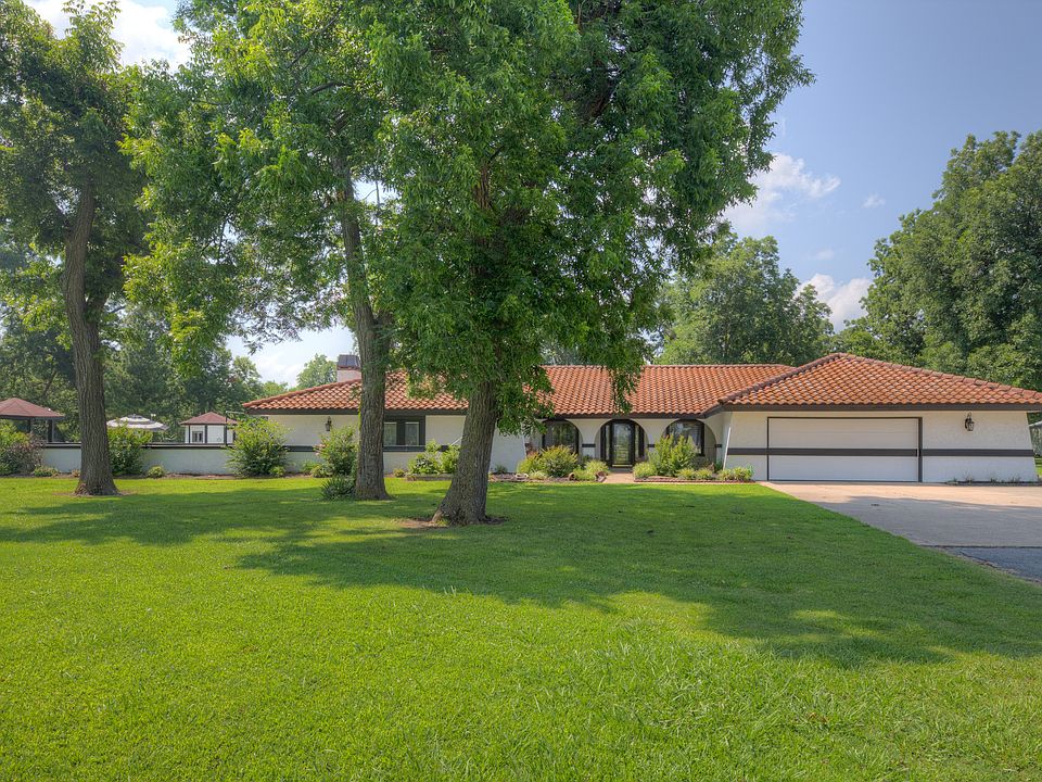 Bixby schools! Outdoor Oasis Acreage with the flare of Mediterranean! Outdoor kitchen/pizza oven, pool/pool house w/1/2 bath, covered patio, Koi Pond. 2 RV 50 amp hook ups. 24X40 Insulated H/A shop, 2 0verhead garage. House garage could be Mother-In-Law Suite has wet bar/ice maker. Split bedrm plan on 1 level w/remodeled chefs kitchen, Two living with cozy fireplace and formal dining for entertaining. Master/private bath. Indoor Storm Shelter. Close to town. Not in flood zone.