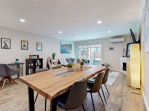 Completely turnkey and highly upgraded end-unit townhouse-style condo in an amazingly convenient location of OC. Larger than many two-bedroom units in this area, this condo boasts an open-layout downstairs with two over-sized bedrooms upstairs. You are at peace upon arrival, as the entry hallway draws your eye to a welcoming over-sized living area. Just to the right of the entrance is an upgraded powder room with back-lit mirror and marble countertop. A generously appointed and upgraded kitchen with shaker style cabinets, white quartz countertops and black stainless appliances opens to the main living area with ample room for a large dining table in addition to the spacious living room. Just beyond the sliding door from the living area is an entertainer's dream; a delightfully appointed and covered patio complete with a neighboring fruit tree. Upstairs hosts two spacious bedrooms, each with large closets, separated by a large bathroom with dual sinks, plentiful storage, and a showpiece of a shower. Hidden behind a trendy barn door in the hallway is a stackable washer and dryer. Throughout the property there are designer touches, including recessed LED lighting, tile wood floors, and crown molding. Behind the scenes, this home boasts a tank-less water heater, energy efficient ductless mini-splits, wiring for smart home integration, as well as a video doorbell and smart door lock.