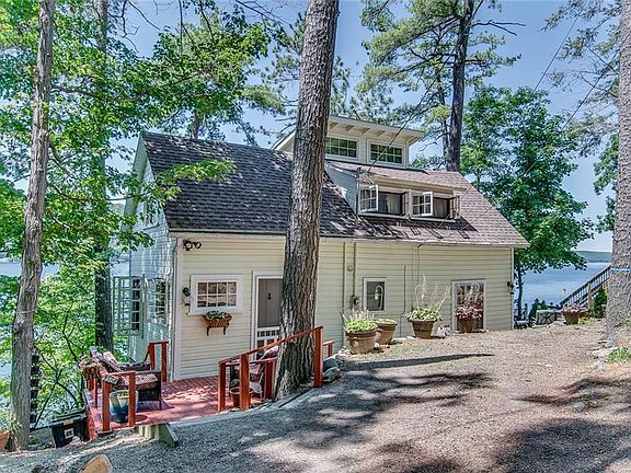 Classic Keuka Gem! This adorable east side classic cottage is perched with breathtaking bluff views. The circular drive provides plenty of parking. With level easy access, the first floor includes kitchen, living/dining room, full bathroom and perfect finished enclosed front porch. Upstairs is a bedroom, sleeping area, half bath and access to the most amazing open porch with framed bluff views. The preserved original hardwoods, beamed ceilings, wood work, and beautiful views from every window will bring you back to the days of classic cottages. Great outdoor patio area, quiet lower lake road location, 77 ft of frontage with shale beach, and lower deck living area on the water complete this wonderful waterfront opportunity. Delayed negotiations until Saturday June 27th at 7pm.
