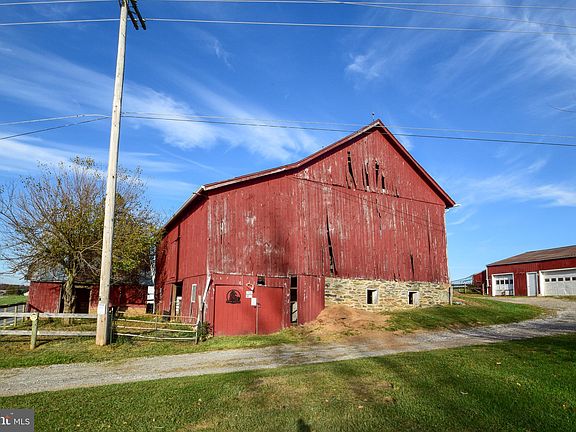 This 8 acre farmette is just 5 minutes from I-83 Exit 4 and offers many possibilities! The farmhouse is currently set up as a two-unit; with the main area offering 3+ bedrooms, 1 full bath, large eat-in kitchen, laundry room and living room with fireplace, as well as an efficiency apartment with its own entrance and updated full bath. However, it would easily be converted back to a 3 bedroom, 2 bath single family home. Updates to the home include a new roof (2023), 200 amp electric (2008), heat pump (2018). The historic bank barn, circa 1886, was built with American Chestnut, and has space for up to 7 stalls on the lower level, and ample storage for equipment and hay on the upper level. There is a 3 car detached pole building with separate electric service, an oil furnace (not currently used) and compressor, and tons of additional space for storage or office area. The fenced pasture (approximately 4 acres) is ready for your horses or other livestock, and has a newer run-in shed, and the fencing is in great shape! There are two outdoor water hydrants, as well as 2 in the barn. There is additional space on the property for paddock or riding ring, and there are even hook-ups for your camper/RV! Approximately 2 acres of wooded land at the rear of the property offers privacy and wildlife galore -- 2 tree stands included!