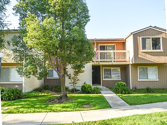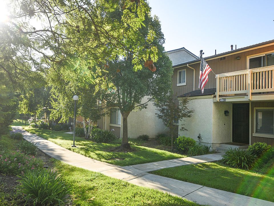 Welcome to 14804 Reedley St, in Varsity Park Villas. This well landscaped community is established in a quiet nook of Moorpark's northern hills and provides a tranquil refuge from the bustle of urban life. The home has been cared for and updated in many respects. Features include: a large quartz kitchen counter, newer appliances, wood floors, fans in all rooms for excellent circulation, and wood blinds throughout. Immaculate bathrooms are connected to each bedroom and also includes one bathroom for guests down stairs. The home also includes smart technology features: thermostat, multi room sensors, and alarm. Entertain guests or just relax in the back yard with a quality concrete patio and grass for the kids, or pets. The Wood/Gas fireplace in the living room provides ambiance and heat in the winter and an effective AC unit is present to keep you cool. The community also has two pools and clubhouses for use by the residents. Recent solar heating upgrades keeps the pools enjoyable to use even in the fall and winter months. Near hiking trails, restaurants, transportation, and Moorpark College and Rustic Canyon Golf Course. This neighborhood is Moorpark's best kept secret. Too many amenities to mention here, come see this home now!